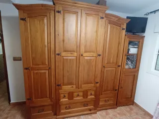 Precioso armario de madera maciza rustico para toda la vida, mejor verlo, y lo mejor rebajado de precio. Viene acompañado de una vitrina de cristal que es la de la derecha de la foto y viene incluida en el precio. Negociable.