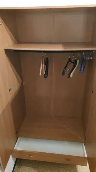 Precio negociable 😊 Armario de madera con puertas y cajones. - Diseño de madera natural. - Tres cajones inferiores. Precio negociable;) Montado 2o sin ascensor