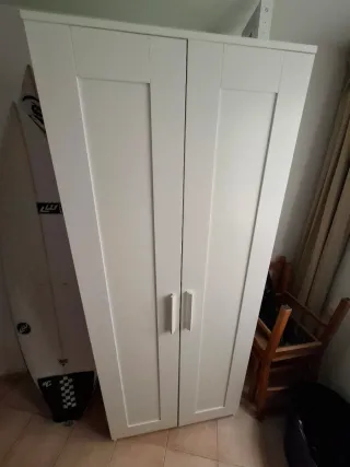Armario de dos puertas de la marca Ikea. Un mueble funcional y elegante para tu hogar. - Diseño moderno. - Acabado en color blanco. No envíos! El que venga a buscarlo tiene que desmontarlo o puedo brindar una mano cargandolo, llevarlo así hasta coche/furgo.