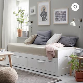 Se vende pack de cama BRIMNES con dos cajones de almacenaje y armario a juego. Ideal para optimizar el espacio. Producto + precio por separado: - Cama individual BRIMNES con dos cajones (se transforma en cama doble): 330. - Armario BRIMNES blanco: 100. - Mesa de noche MALM blanca: 50.