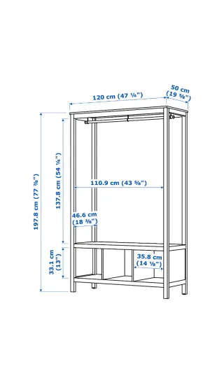 Armario abierto Ikea 120x50x197 cm. Gran capacidad. Precio en tienda: 219 euros. Se entrega desmontado para facilitar transporte. Con los defectos típicos de los muebles de Ikea. Tengo dos iguales. Uno por 120 euros. Dos por 200 euros.