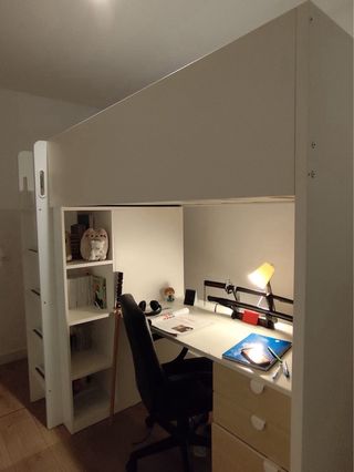 Litera con escritorio y armario.