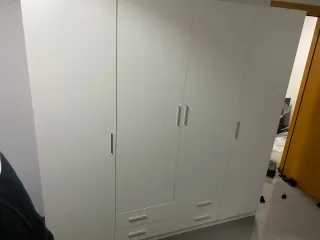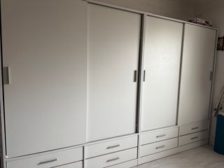 Armario de gran capacidad con un diseño moderno y funcional. - Cuatro puertas superiores. - Cajones inferiores para almacenamiento adicional. - Acabado en blanco.cambrian.artico.cerezo wengue. 200x100 170€ 200x150 240€ 200x200 280€ transporte y montaje incluido