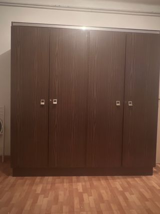 Armario de cuatro puertas con un diseño de madera. - Cuatro puertas frontales. - Acabado en madera. Las dos puertas de la parte izquierda cierra con llave , la otra parte no cierra se tiene q arreglar la cerradura, lo tenemos desmontando, tenemos transporte aparte