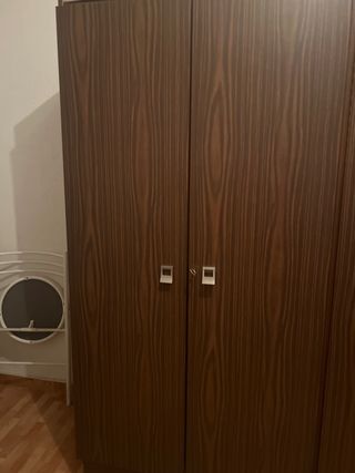 Armario de madera con un diseño clásico y elegante. - Amplio espacio de almacenamiento. - Puertas con tiradores metálicos. Hay que desmontarlo