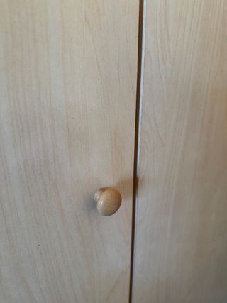 Armario de madera con3 puertas y 2 cajones,de dentro estaba muy bien no ha hecho fotos de dentro porque todavía lleva ropas,lo vendo para tiener un armario más grande,lo que compré falta que desmontarlo, el precio es muy barato. - Diseño de madera clara. - Tiradores metálicos.