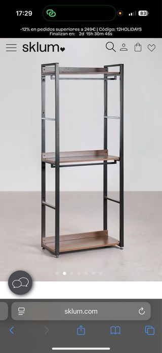 Armario abierto con un diseño industrial y moderno, perfecto para organizar tu ropa y accesorios. - Estructura robusta de acero. - Baldas de MDF con acabado en madera.