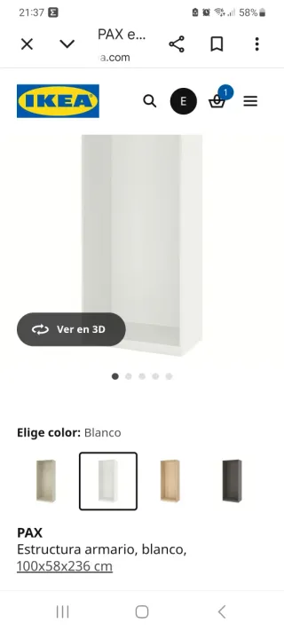 Armario vestidor de Ikea, ideal para organizar tu ropa y accesorios. Comprado a finales de octubre 2025 - Amplio espacio de almacenamiento. - Diseño moderno y funcional. 225 x 58 x 236