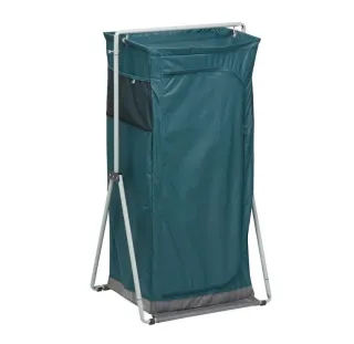 Armario de camping Decathlon, varias alturas de almacenaje y puntos para colgar ropa. Como nuevo, se usó solo 2 veces - Estructura de metal y nylon. - Tejido de poliéster resistente. - Color gris y verde azulado.