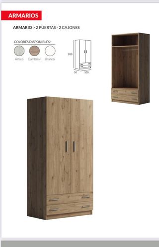 🟥ARMARIOS EN LIQUIDACIÓN 🟥 Armarios de 2, 3 y 4 puertas en liquidación: Disponemos de tres tipos de armarios: Armario de dos puertas 100x200 Armario de tres puertas 150x200 Armario de cuatro puertas 200x200 El precio más bajo de todo el mercado. Disponemos de cómodas, Mesitas, Almohadas, bases, somieres, Canapés, Colchones... Transporte gratuito hasta tu domicilio, pago contra reembolso en el momento de la entrega. Entrega a domicilio en 2-6 días hábiles . ¡NO TE QUEDES SIN EL TUYO!