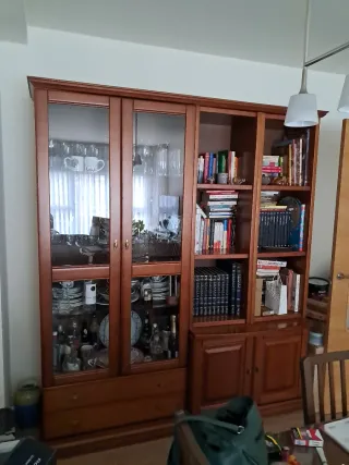 Armario de salón con vitrina de madera