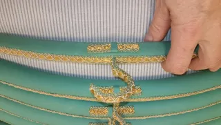 Mueble de colgar a la pared con un diseño único que combina madera y cajón con frente en pan de oro, plata y bronce
