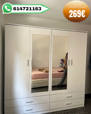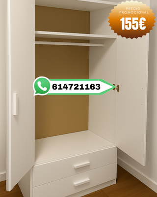 🛏️ ¡LIQUIDACIÓN DE MUEBLES! ✔️ ¡GANA ESPACIO CON ESTILO! ✔️ Convierte tu dormitorio en un espacio cómodo, obtienes máxima capacidad de almacenamiento, todo con la mejor calidad-precio. 📏 Medidas disponibles: ✅ 2 puertas - 1 metro ✅ 3 puertas - 1,5 metros ✅ 4 puertas - 2 metros alto 2 metros Precio publicado del armario 2 puertas 📦 TODO NUEVO 📦 🚛 Envío rápido y seguro. 💳 Pago contra reembolso disponible. OFERTAS DE SOFÁ, MESITA DE NOCHE, SOMIER, CANAPÉ, BASE TAPIZADA, MESA DE CENTRO, ARMARIO, ALMOHADA ETC.