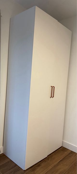 Armario de IKEA valor nuevo: 474,00€ Puertas correderas HASVIK 169,00€ Estructura armario PAX (2) 140,00€ Balda vidrio KOMPLEMENT 25,00€ Bandeja extraible KOMPLEMENT 20,00€ Cesto rejilla KOMPLEMENT (4) 60,00€ Baldas KOMPLEMENT (4) 36,00€ Barra armario KOMPLEMENT (2) 8,00€ Riel extraible KOMPLEMENT (4) 16,00€