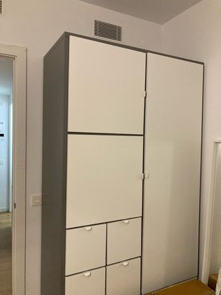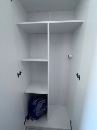 Armario de madera en color blanco. Disponible para retirar a partir del 15 de abril. Hay una placa divisoria caso queira dejarle con 2 reparticiones , Ultima foto subida. - Diseño moderno y funcional.