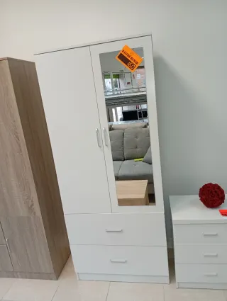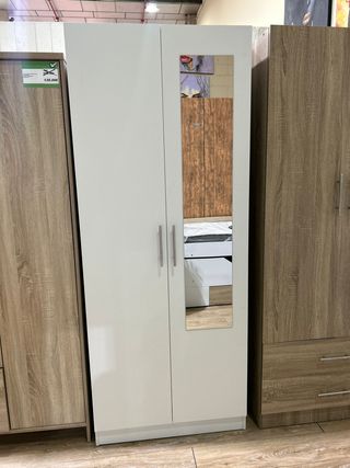 Armario de dos puertas con espejo y dos cajones inferiores. Ideal para organizar tu ropa y complementos. - Puertas con tiradores metálicos. - Cajones con tiradores integrados. Medidas - ancho 80 - Fondo 50 - Altura 190.5