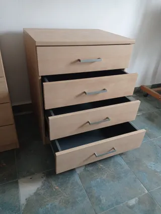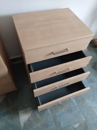 Mueble de almacenaje con cuatro amplios cajones. Calidad de materiales. 45€ cada una . Las dos por 80. - Diseño moderno y funcional. - Acabado en madera clara. - Tiradores metálicos.