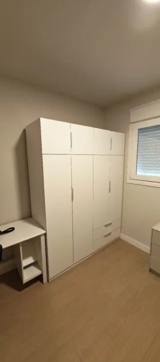 Armario de gran capacidad con un diseño moderno y limpio. - Puertas con tiradores integrados. - Cajones inferiores para almacenamiento adicional. - Acabado liso y fácil de limpiar. Precio nuevo 230€ NO TIENE USO. Requiere desmontar para llevar.