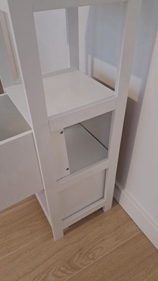 Este mueble de baño está hecho con madera lacada en blanco MDF y cuenta con una superficie resistente a la humedad que es fácil de limpiar. Sus medidas son L30cm x H89cm x P30cm, con una capacidad máxima de carga de 10 kg por estante. Tiene un peso de 11 kg. Este mueble columna de baño tiene 1 estante y 2 cajones, ofreciendo suficiente espacio para guardar sus accesorios diarios en el cuarto de baño. Es práctico y funcional, y gracias a su diseño moderno y elegante, será una adición atractiva a cualquier hogar. Comprado en tienda Maisons du Monde, el precio actual según web es entre 71,78€ y 79,75€ (según descuento). REF.M23055892