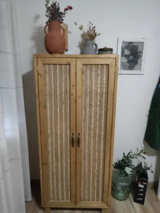 Armario de estilo vintage con un diseño clásico y elegante. Sus puertas de madera aportan calidez y un toque rústico a cualquier espacio. - Dos puertas. - Tiradores metálicos. - Base tallada. Hay que bajarlo desde un tercero por las escaleras.Está en calle Júpiter