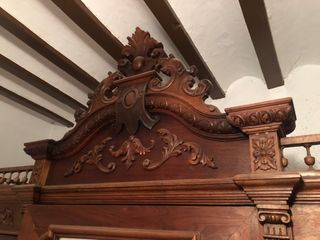 Precioso armario de nogal antiguo, con excelente talla a mano por el afamado artista toledano Jesús Aparicio. Se encuentra en muy buen estado de conservación.