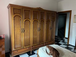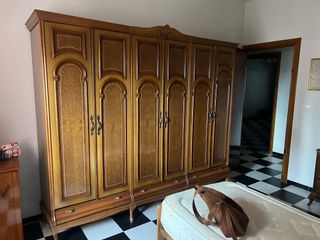 Armario de madera con un diseño clásico y elegante. SOLO RECOGIDA EN VILLAMIEL, TOLEDO - Seis puertas. - Tiradores metálicos. - Detalles ornamentales en las puertas. - Cajones inferiores.