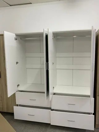 Armario de cuatro puertas con un diseño moderno y funcional. Cuenta con cajones integrados para un almacenamiento adicional. 🚚 Envío a todo España 💶 Pago CONTRAREEMBOLSO (paga al recibir) 🛋️ Muebles NUEVOS de fábrica – sin intermediarios 📌 Sofás, dormitorios, terrazas, aparadores, camas y mucho más. 📲 Escríbeme por WhatsApp: 658469843 Pregunta sin compromiso – ¡respondo rápido!