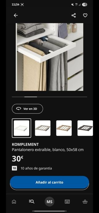 Pantalonero extraíble IKEA KOMPLEMENT blanco+leja