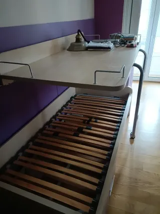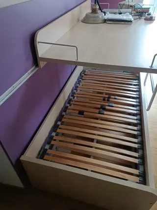 Conjunto de armario y cama nido. - Armario con puertas blancas y tiradores rosas. - Base de cama nido con cajones rosas - Escritorio conjunto con cajonera - En perfecto estado - Para mas información contacte a este numero de watchapp 602398877