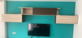 parte de arriba dos modulos de 90 de largo 33 de fondo. el del medio 1,80 de larto 33 de fondo. VENTA LEJAS Y ARMARIOS DE ENCIMA DE LA TELE. color chocolate y canela