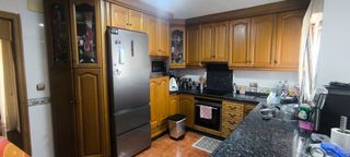 Muebles de cocina de roble macizo, en color marrón. Están en buen estado y son ideales para dar un toque rústico a tu cocina. - Armario alto con puertas de cristal. - Mueble bajo con cuatro puertas.