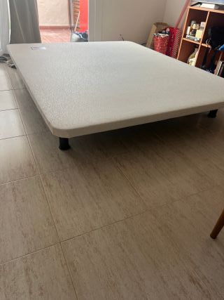 Base de cama tipo somier con patas incluidas. - Medidas: 160x200cm. - Altura total: 30cm. - Color: Beige y negro.