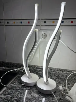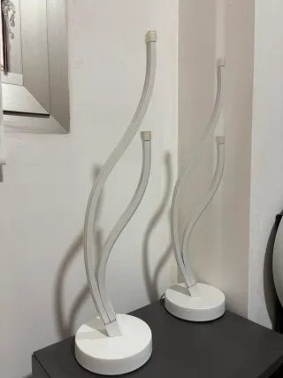 Conjunto de dos lámparas de mesa con un diseño curvo y moderno. Perfectas para añadir un toque de luz y estilo a cualquier rincón. - Base redonda estable. - Diseño ondulado elegante.