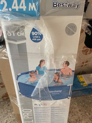 Piscina Bestway Steel Pro, ideal para disfrutar del verano. Está prácticamente nueva. - Medidas: 2.44m de diámetro y 61cm de altura. - Capacidad: 1724 litros (456 galones). - Incluye estructura metálica.