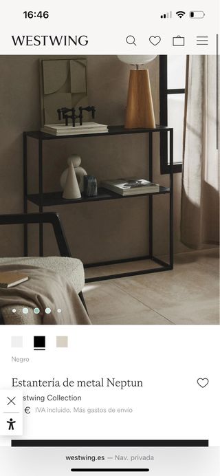 Bonito recibidor de metal, ideal para cualquier entrada. Es de color negro y tiene dos estantes. - Medidas: 80x80 cm - Estructura resistente