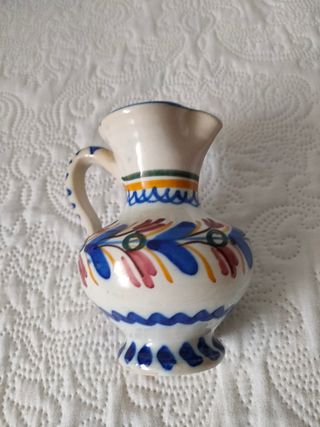 Bonito jarrón de cerámica con un diseño pintado a mano. - Diseño floral con tonos azules, rosas y amarillos. - Borde superior con detalles en verde y naranja. - Base con patrón de puntos azules.