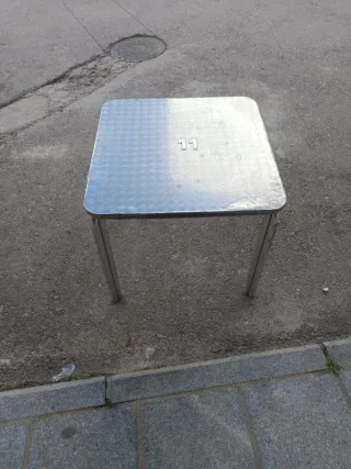 Mesa metálica plateada con número 11