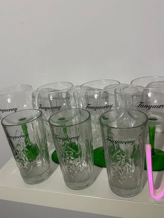 4 Copas y 3 Vasos Tanqueray Verdes