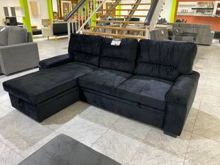 Sofá Cama Chaise Longue 3 Plazas Negro