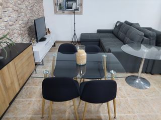 Mesa cristal y 4 sillas comedor negras