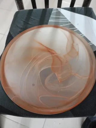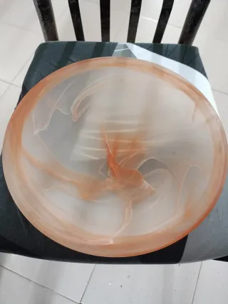 Tulipa de cristal para lámpara de techo con un diseño marmoleado en tonos naranjas y transparentes. Aporta un toque de color y estilo a tu iluminación. - Diseño marmoleado. - Acabado translúcido.