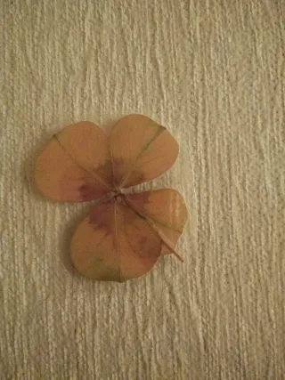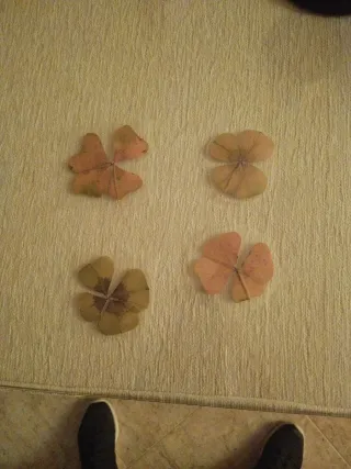 Cuatro tréboles secos, perfectos para manualidades o decoración. - Hojas de trébol de cuatro hojas. - Tonos naturales y secos.