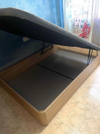 Canapé abatible con estructura de madera y acabado en tela. - Amplio espacio de almacenamiento interior. - Diseño moderno y funcional. - Poco uso. - Para el colchón de 135x200 cm.