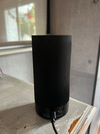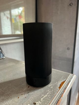 Elegante difusor de hogar en color negro. Su diseño cilíndrico con líneas verticales le da un toque moderno. - Acabado mate. - Base redonda.