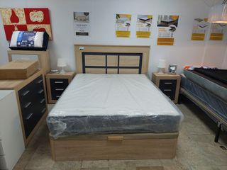 Conjunto de dormitorio con acabados en marrón y negro. -INCLUYE: CANAPE 150X190 + COLCHON VISCOELASTICO 23CM, CABECERO + 2 MESITAS DE NOCHE Y COMODA Linea directa📞24/7 sin compromiso! 📍 643*189*083 📞 🛋️ MUEBLES NUEVOS DE TODO TIPO PARA EL HOGAR 🏠 🎁 NUEVOS EN SU CAJA DE FABRICA 📦 1️⃣ Se suben hasta el domicilio 🚚🏠 2️⃣ El pago es en persona al recibir 💵📲