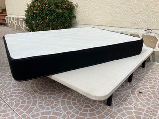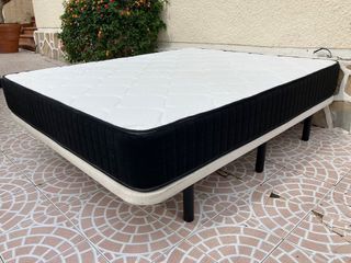 Dispongo de cama 135x190cm completa de alta gama en perfecto estado‼️ 🔸colchon viscoelastico, nucleo eliocel hr sin muelles, firmeza media, tejido 3D transpirable cara inferior. 🔹base tapizada reforzada, tejido 3D tapizado, valvulas de ventilacion, 5 barras transversales de refuerzo y 7 patas redondas. Posibilidad de transporte 🚚