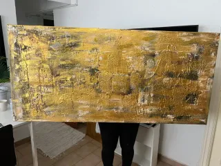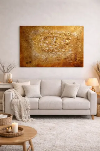 Cuadro abstracto original pintado a mano sobre lienzo. Una pieza única con textura y detalles dorados que aportan un toque de elegancia. - Técnica mixta con acrílicos. - Base de lienzo de alta calidad. - Acabado con pan de oro.