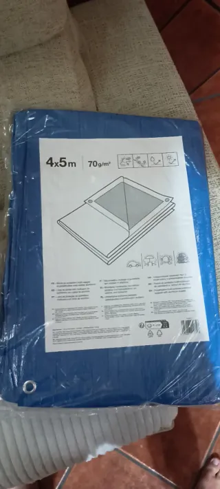 Vendo lonas multiusos impermeables nuevas a estrenar en su plástico Ideal para cubrir piscinas y protegerla del suelo,como avance de camping para no manchar la tienda por debajo,como toldo,para recubrir vehículos,cubrir muebles de jardin,tapar leña,proteger de la lluvis,incluso como lona deslizante para niños y adultos Tiene ojales para poder colgar y tensar,es resistente y facil de manejar. Cualquier duda preguntar sin compromiso Medidas disponibles: 3x2 ➡️10€ 4x5 ➡️ 20€ 6x10 ➡️ 50€ Se pueden recoger Arroyomolinos Móstoles Nuevos Ministerios o Carabanchel(Abrantes) Hago envios
