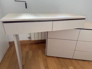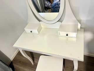Tocador ikea blanco con espejo y taburete a juego. Apenas usado ya que estaba en segunda residencia. Posibilidad de entregar desmontado. Posibilidad de entrega en Madrid - Incluye dos cajones pequeños y uno grande.
