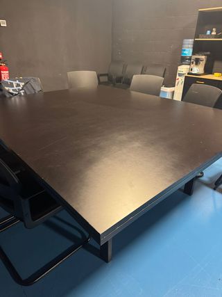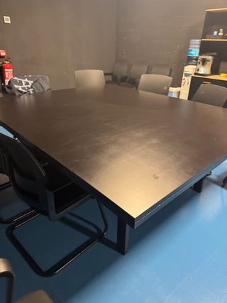 4 mesas 210 x 175 cms con estructura de hierro y encimera de madera lacadas en negro. Precio por unidad.